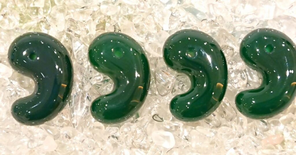 「めのう」は硬度が7で、 加工しやすい鉱石です 断面の美しさから、 紀元前より、ブレスレットや ブローチに加工されていました 日本でも「めのう」の勾玉が 島根県の大原遺跡などから 見つかっています今でも、 アクセサリーとしてだけでなく コースターも人気があります めのうは時を経ても褪色せず、 模様も輝きも 失われにくいと言われています 美しい模様とガラス光沢の輝きが 古代から現代に至るまで ずっと人間の心を捕らえて 離さないのでしょう めのうの勾玉(出土品ではありません) 「めのう」はカップの6のクリスタルタロットです