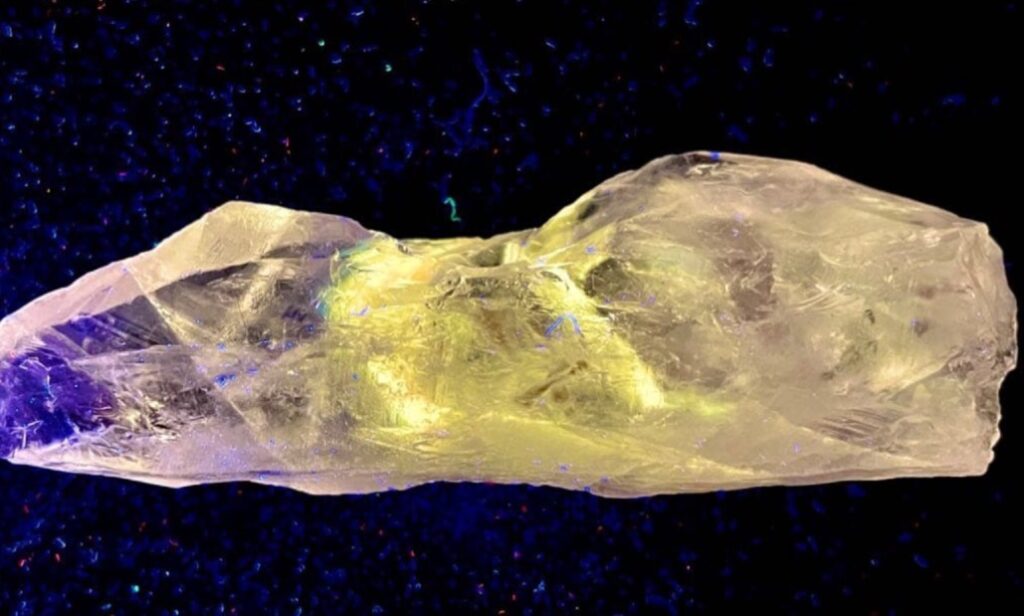 ただし、パウエライトと思われていた黄色に発光する鉱物の正体は解明されていないので、必ずしもパウエライトが内包されているとは限りません。