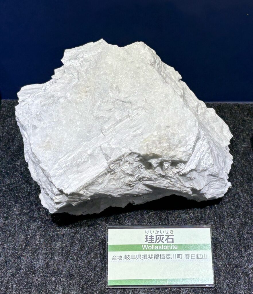 珪灰石(けいかいせき、ウォラストナイト)は主にスカルン帯に産出し、