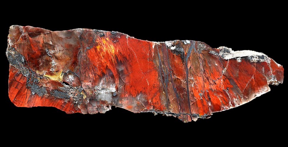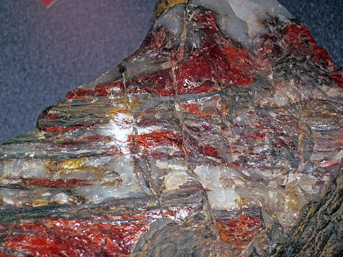 ビンガマイトは熱水堆積した繊維状のヘマタイトやゲーサイトの層の上に、層状のクォーツが形成されたものです。